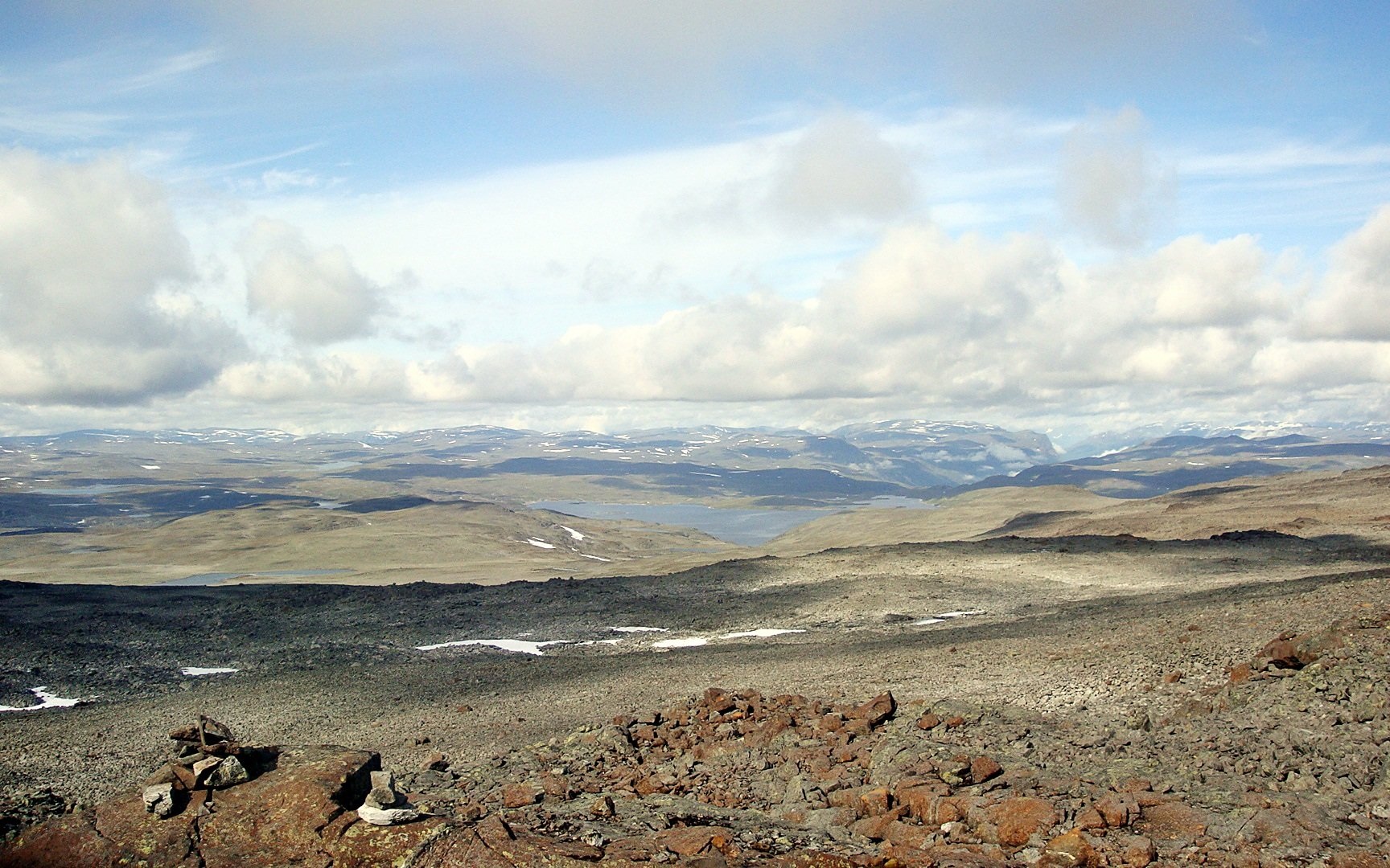 Celodenní pokračování cesty na jih přes Östersund, Trondheim a Lom do Spiterstulen. Utáboření se u turistické chaty Spiterstulen a nocleh.