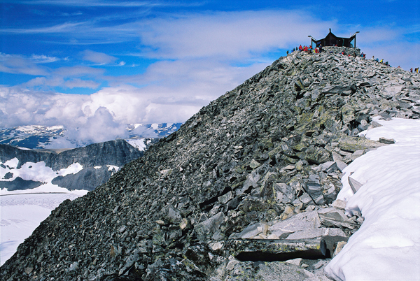 Okružní výstup od chaty Spiterstulen přes vrcholy Svellnose (2272 m n. m.) a Keilhaus topp (2355 m n. m.) na nejvyšší horu Norska Galdhøpiggen (2469 m n. m.) Sestup přes ledovec Styggebreen a horskou chatu Juvasshytta do údolí k turistické chatě Spiterstulen (vzdálenost 21 km, převýšení 1400 m). Nocleh u chaty Spiterstulen.
